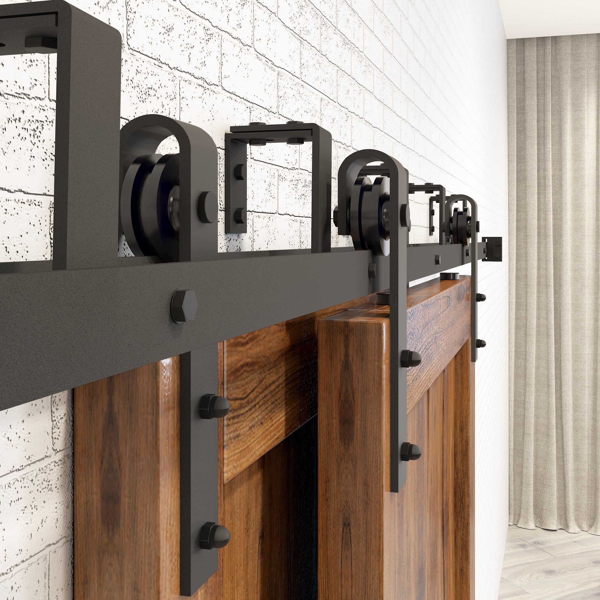 - Package includes all the pieces you need to install a wood barn door and the necessary barn door hardware kit.
